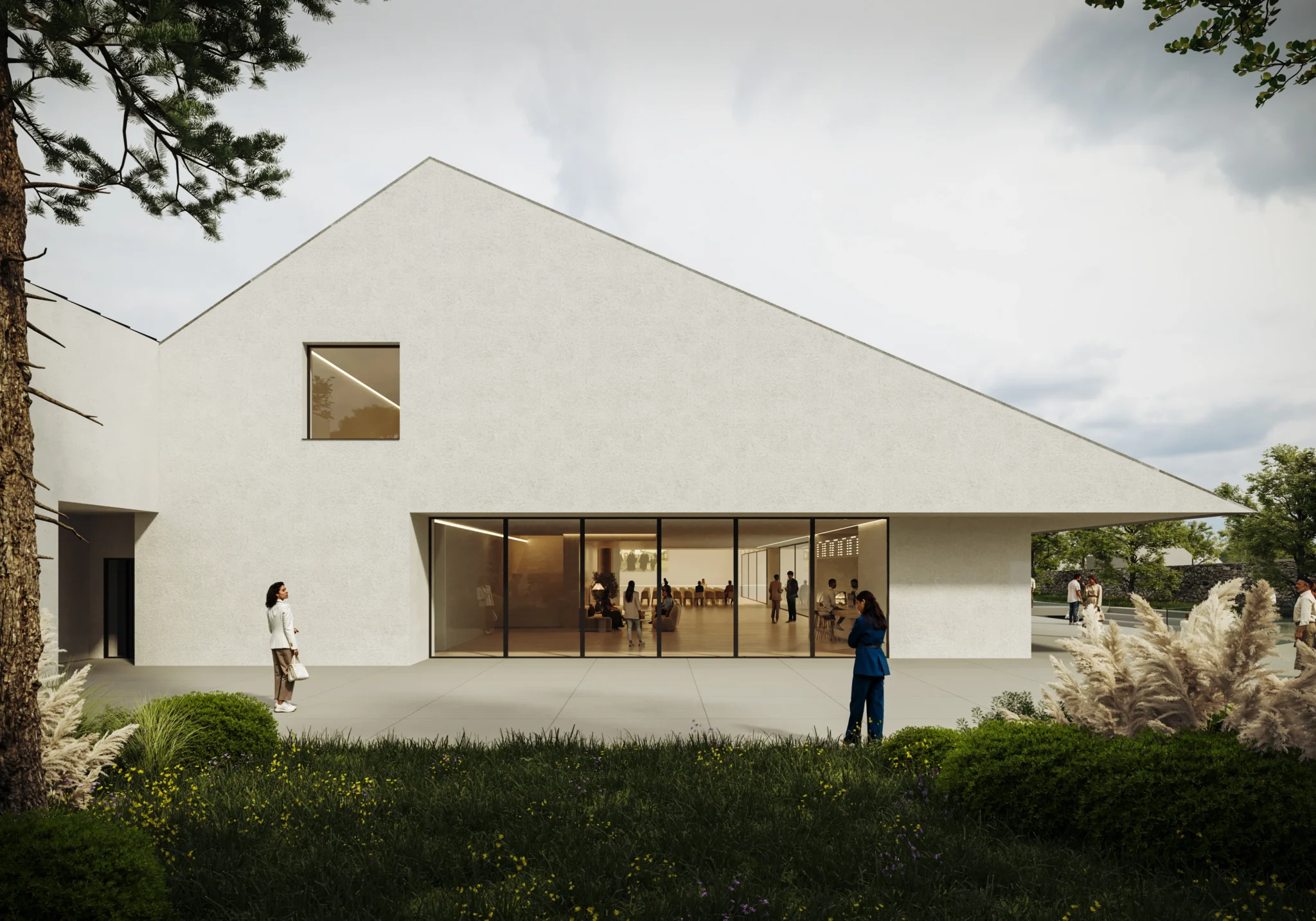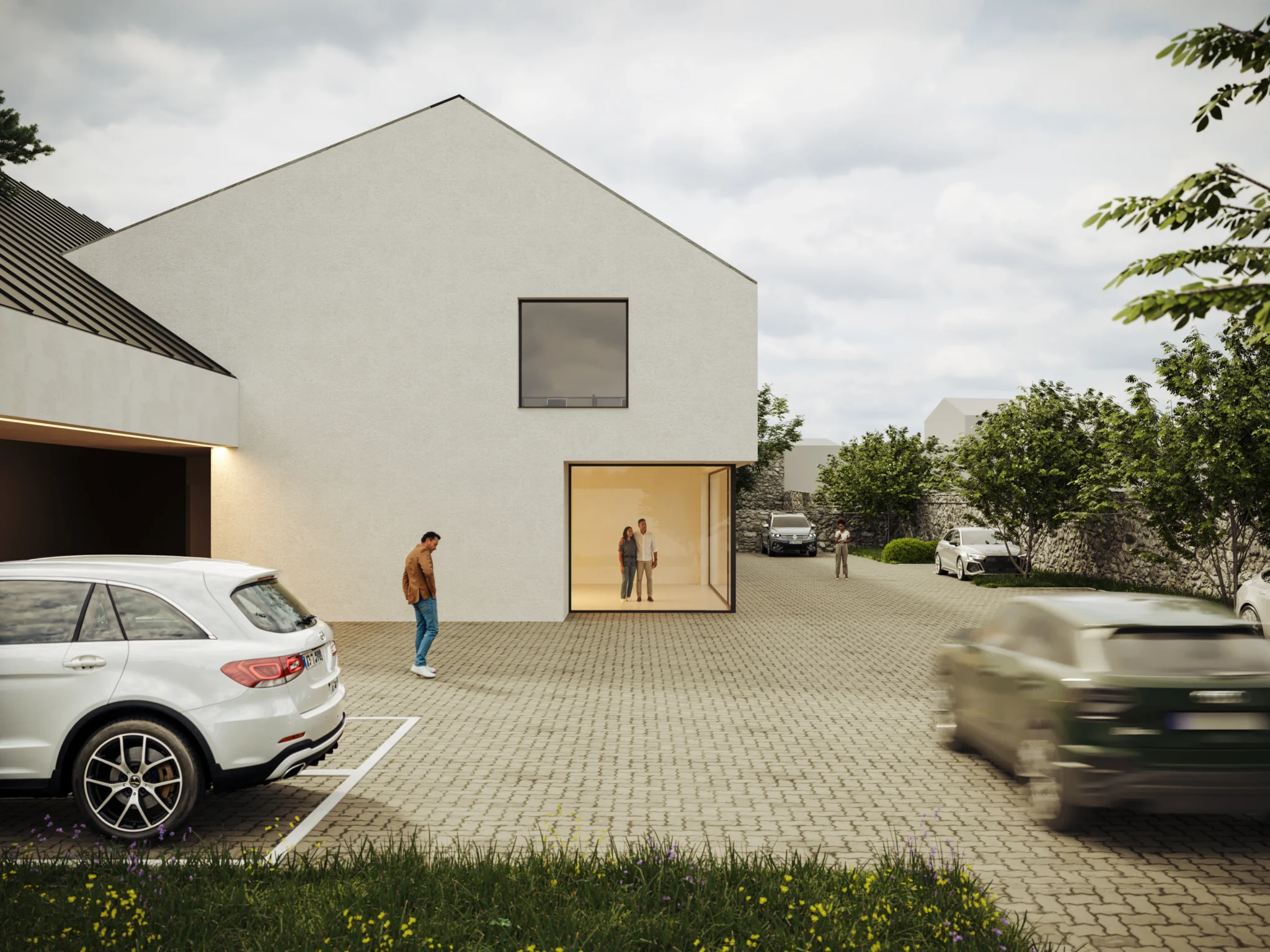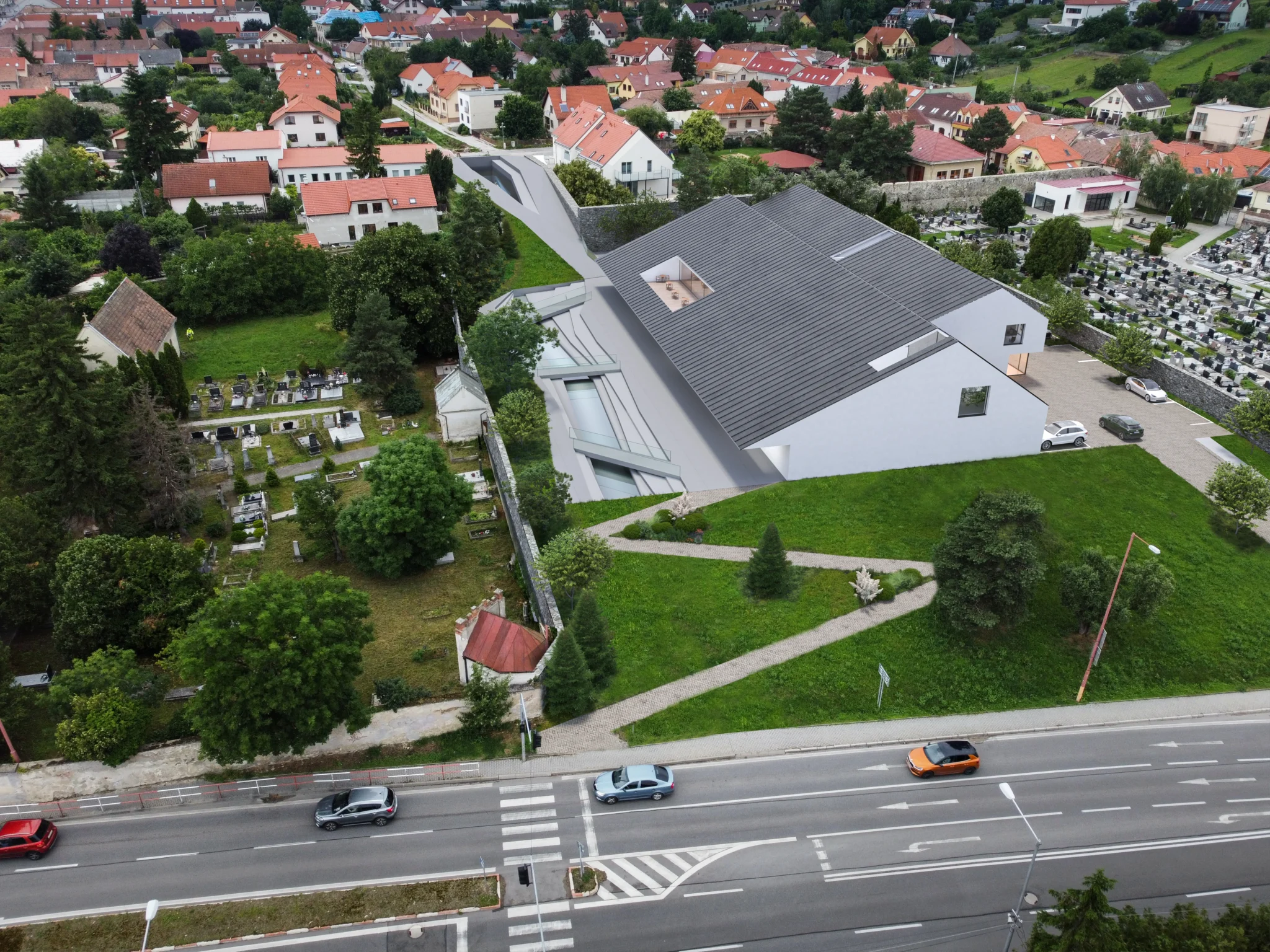 Návrh Domu kultúry vo Svätom Jure – súťažný projekt v spolupráci s firmou PRISCA s.r.o. Predložený návrh vychádza z myšlienky vytvorenia „uzavretého ostrova“, ktorý zahŕňa nielen samotnú stavbu, ale aj atraktívny verejný priestor. Tento priestor je koncipovaný okolo revitalizovaného úseku pôvodného potoka, pričom jeho okolitá zeleň vytvára prirodzenú bariéru proti rušivým vplyvom z okolia. Materiálové riešenie kombinuje tradičné tvary a materiály s moderným prístupom. Z diaľkových pohľadov stavba harmonicky zapadá do historického prostredia, zatiaľ čo pri bližšom skúmaní odhaľuje súdobé architektonické detaily a výrazne moderný charakter. Hlavné súčasti návrhu: Hlavná sála – reprezentatívny priestor určený na kultúrne a spoločenské podujatia, koncerty, divadelné predstavenia či prednášky. Multifunkčná miestnosť – flexibilný priestor prispôsobiteľný rôznym aktivitám, ako sú workshopy, výstavy, stretnutia či komunitné akcie. Štyri byty – komfortné obytné jednotky integrované do objektu, poskytujúce moderné bývanie v historickom kontexte mesta. Prenajímateľné priestory – určené pre obchodné, kancelárske alebo kreatívne využitie, podporujúce ekonomickú udržateľnosť projektu.